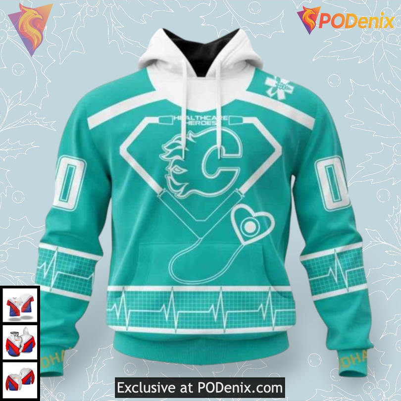 Product Information for Healthcare Heroes Tribute Custom Calgary Flames Youth Hoodie 3D Design: