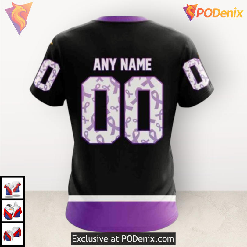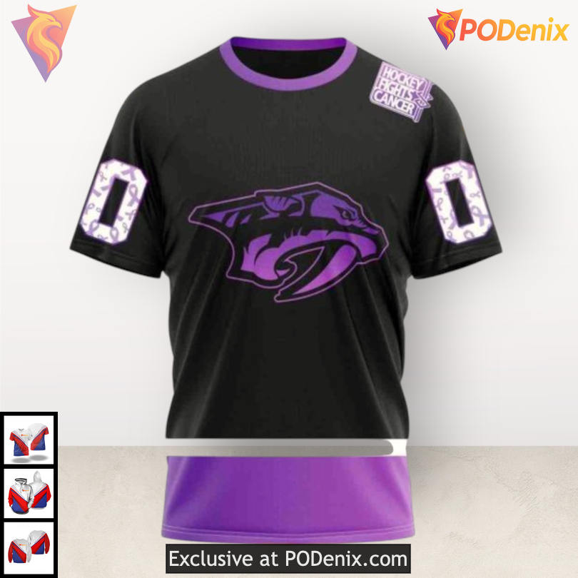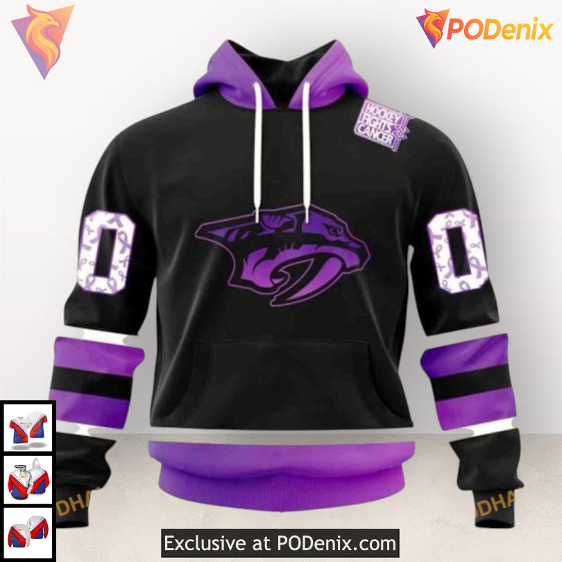 Custom 3D Black Hoodie for Predators: Hockey Fights Cancer Awareness Tribute