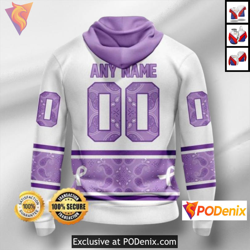 Product Information for Hockey Fights Cancer Personalized Colorado Avalanche Mens Hoodie Custom Apparel: