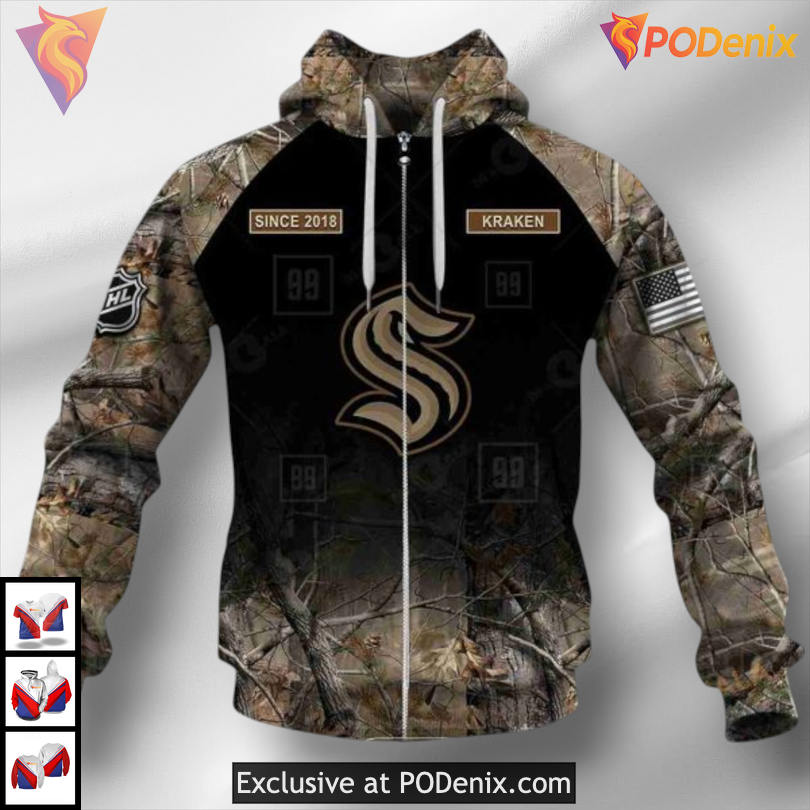 Product Information for Hunting Camouflage Concept Design Custom Seattle Kraken Pullover Hoodie 3D: