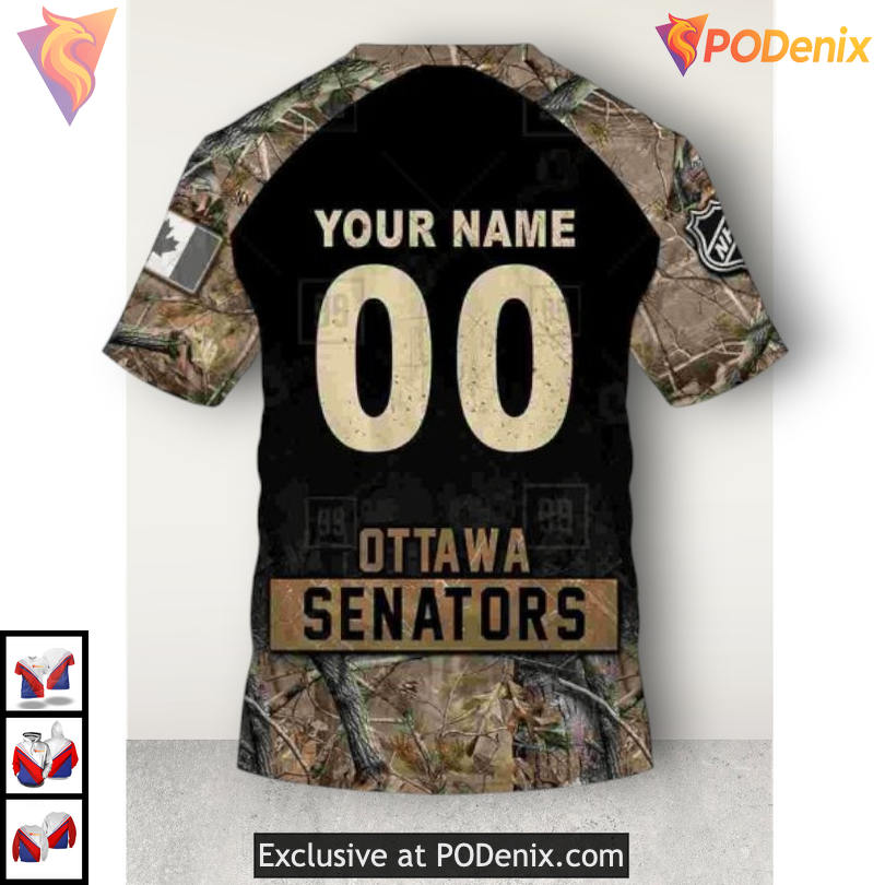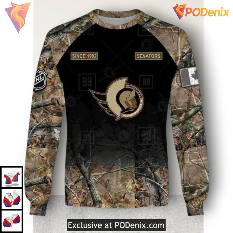 Product Information for Hunting Camouflage Graphic Edition NHL Ottawa Senators Graphic Hoodie 3D: