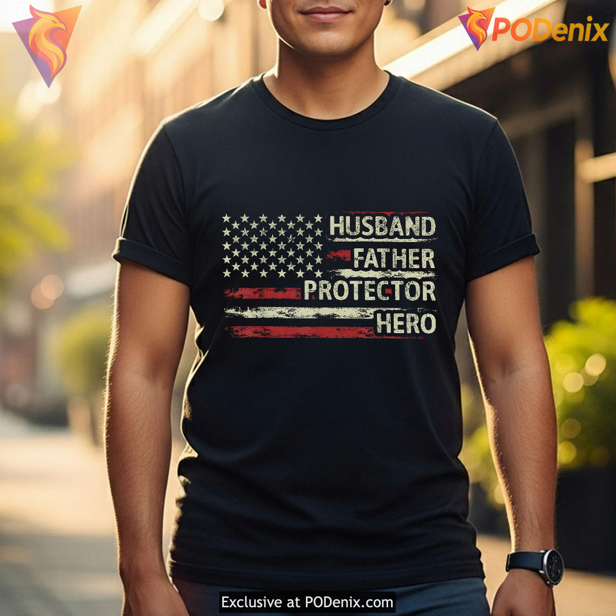 Product Information for Husband Father Protector Hero Fathers Day T Shirts American Flag Dad: