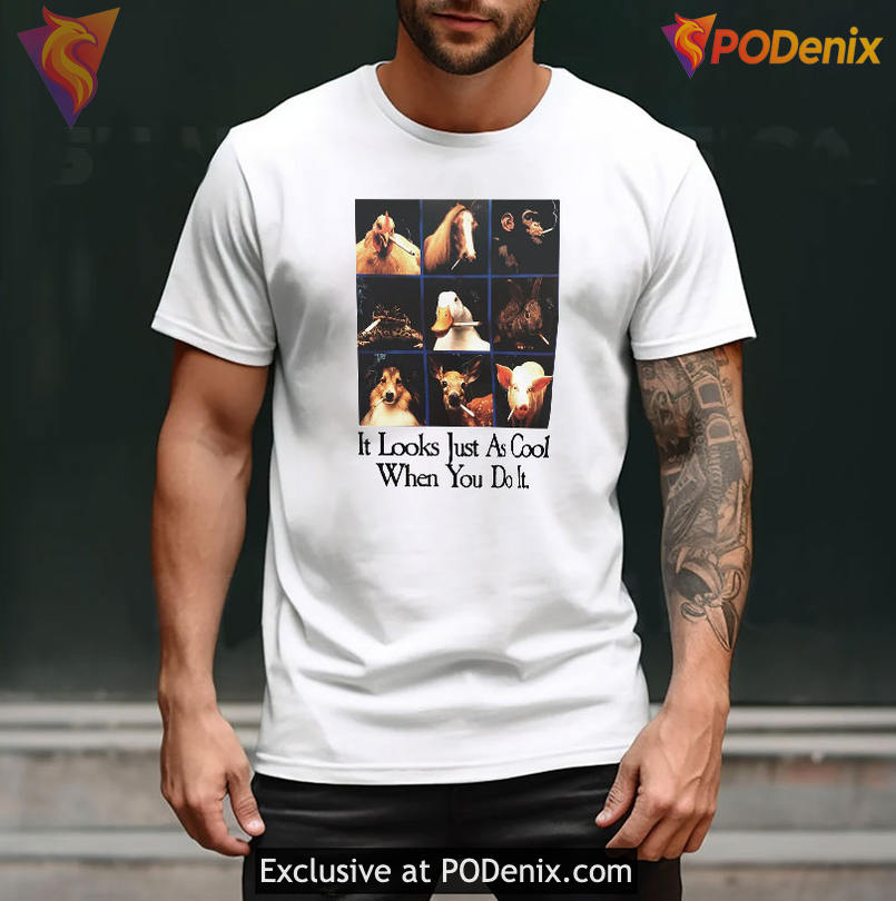 Featuring a vibrant design that celebrates the spirit of self-expression, this shirt showcases the bold phrase it looks just as cool when you do it. The energetic colors create a playful vibe, perfect for those who appreciate a humorous touch in their wardrobe.