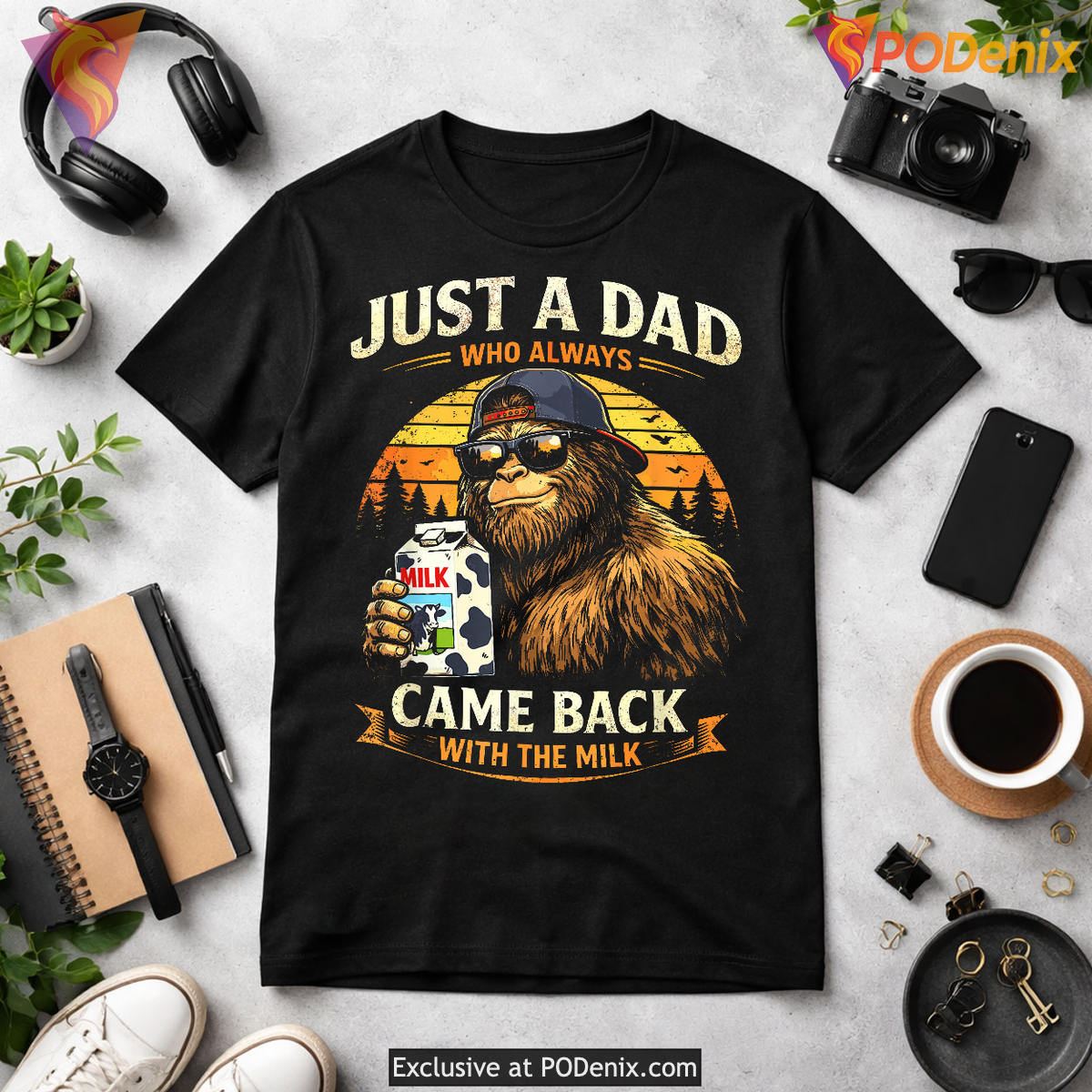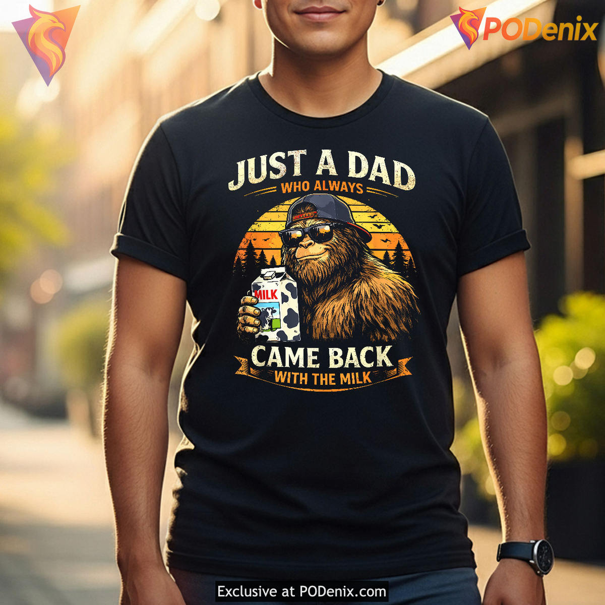 Product Information for Just A Dad With The Milk Funny Fathers Day Shirt Bigfoot Papa Gift: