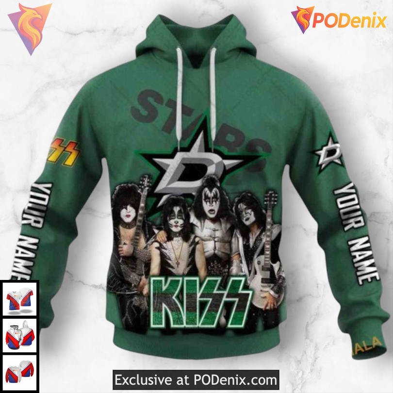 Featuring elements of kiss band inspired dallas stars apparel, this hoodie captures the heart of fandom. The design reflects a unique blend of sports culture and musical influence, making it a must-have for fans who appreciate both the game and the music.
