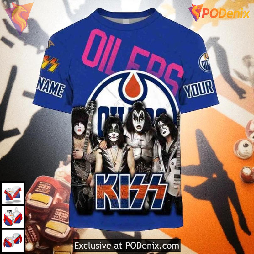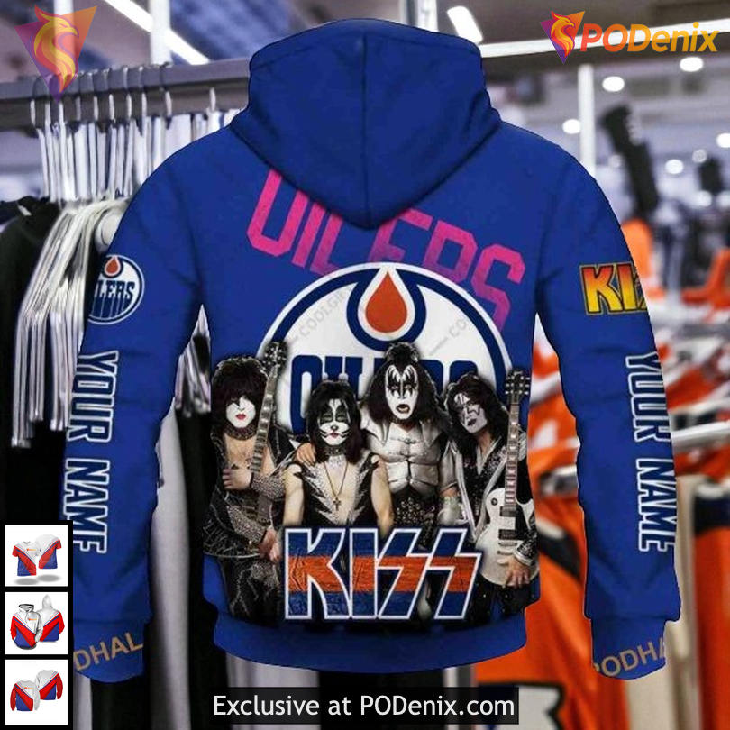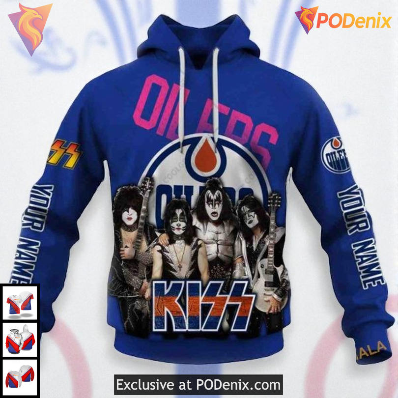 Product Information for Kiss Band Rock Style Tribute NHL Edmonton Oilers Christmas Hoodie 3D:
