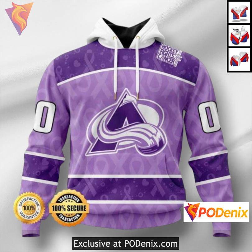 Product Information for Lavender Cancer Awareness Tribute Colorado Avalanche Hoodie For Men Custom 3D: