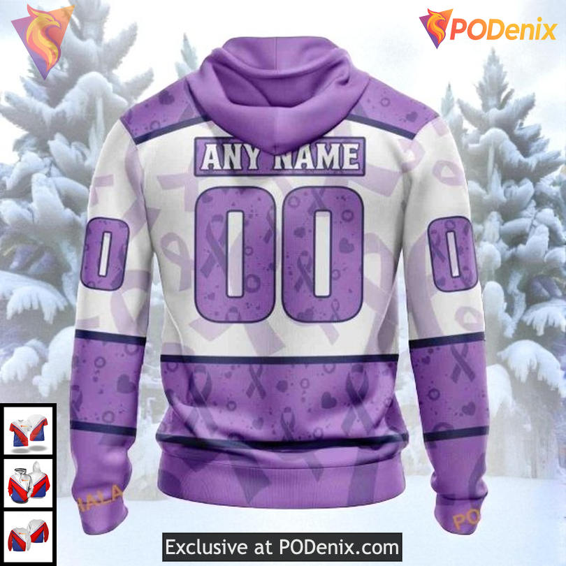Product Information for Lavender Cancer Awareness Tribute Custom Los Angeles Kings Holiday Hoodie NHL 3D: