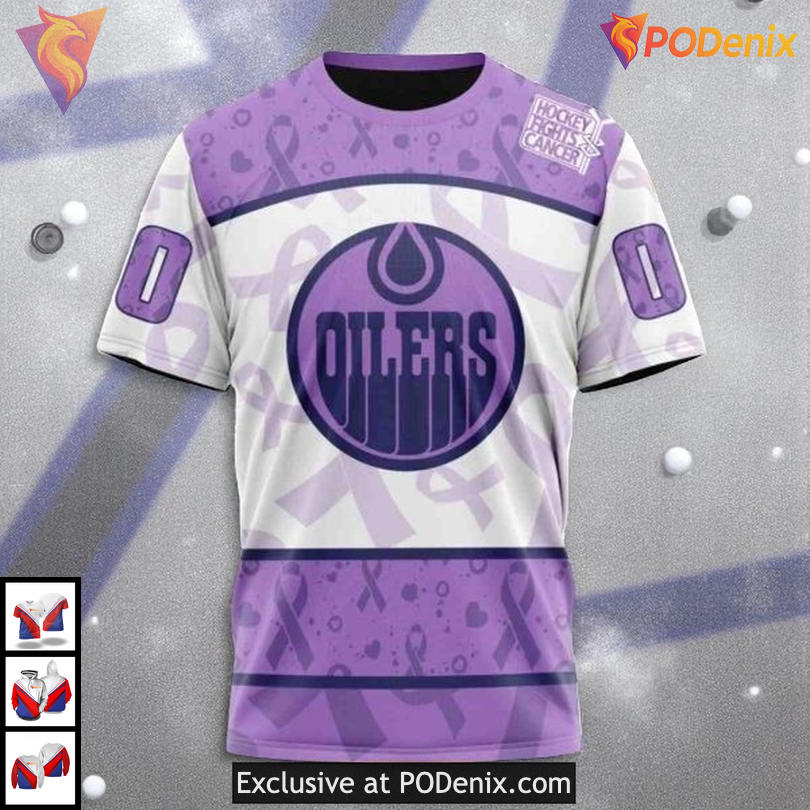 Product Information for Lavender Cancer Awareness Tribute NHL Custom Edmonton Oilers Hoodie 3D: