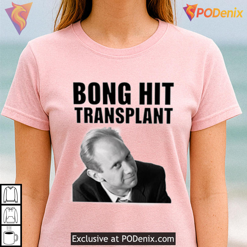 Embrace the spirit of cannabis culture with the bong hit transplant design, perfect for casual outings or gatherings with friends. Let your shirt do the talking as you connect with fellow fans of humorous takes on cannabis culture.