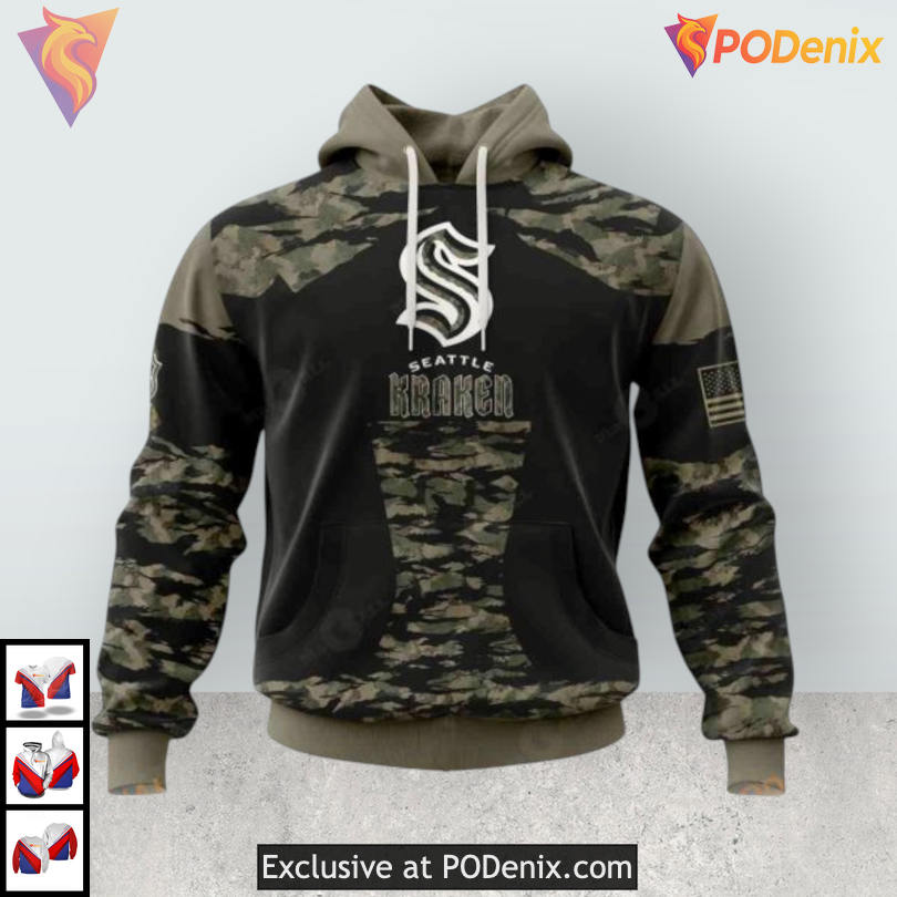 Military Members Tribute Seattle Kraken Apparel – Custom Name Hoodie for Fans