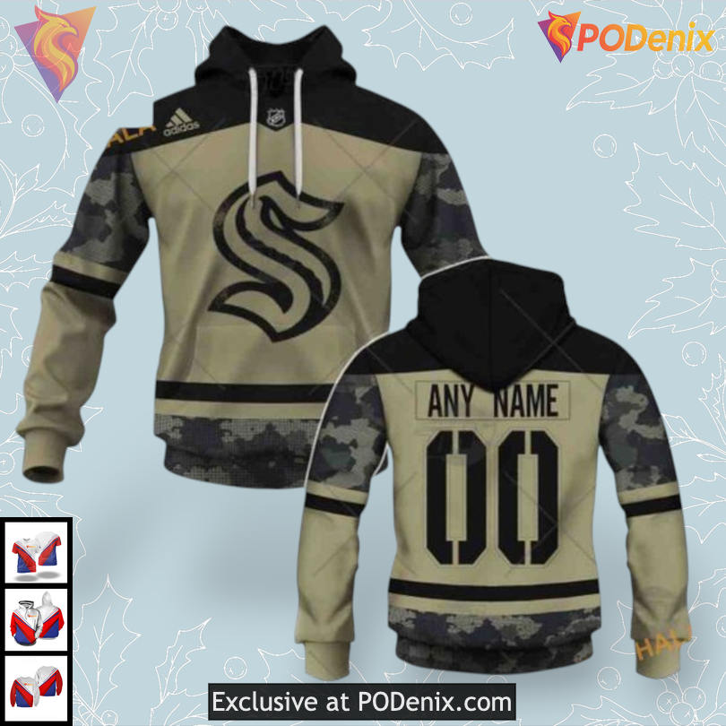 Product Information for Military Practice Jersey Tribute NHL Custom Name Seattle Kraken Hoodie 3D: