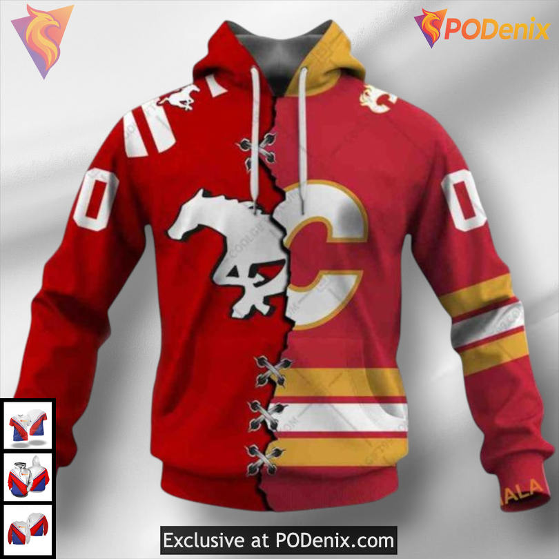 Product Information for Mix CFL Stampeders Jersey Graphic Calgary Flames Pullover Hoodie 3D: