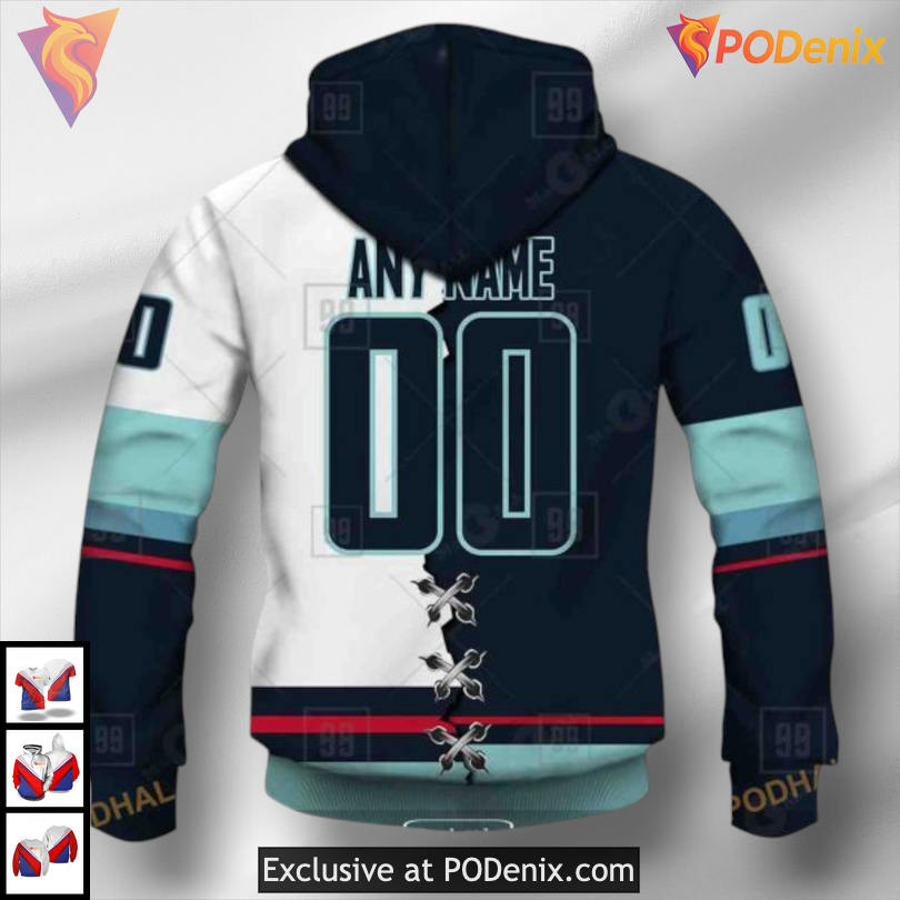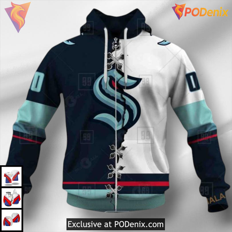 Product Information for Mix Color Jersey 2025 Tribute Edition Custom Seattle Kraken Full Print Hoodie 3D: