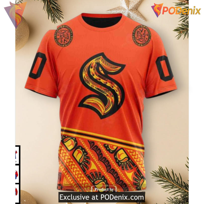 The Seattle Kraken 3D Hoodie showcases a vibrant mix of colors and dynamic patterns that reflect the energy of the team. Its unique design features elements that celebrate the spirit of National Day for Truth and Reconciliation, making it a standout piece for fans.