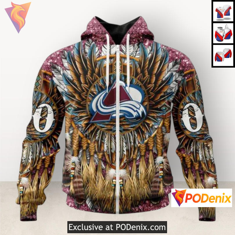 Custom Colorado Avalanche Hockey Sweatshirt: A Unique Blend of Team Spirit and Native Costume Artwork