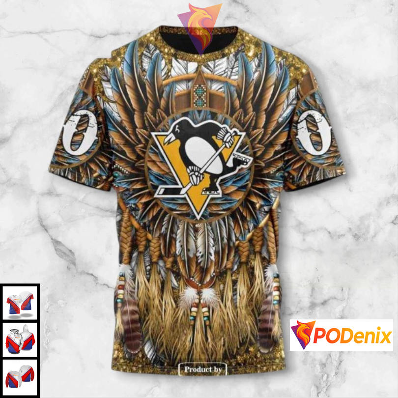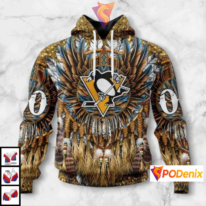 Personalized Pittsburgh Penguins Hoodie Design with Native Costume Artwork