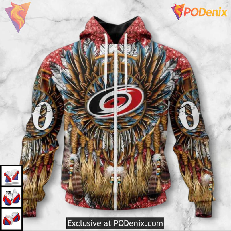 Embrace Team Spirit with Native Costume Artwork Design Sweatshirt for Carolina Hurricanes Fans
