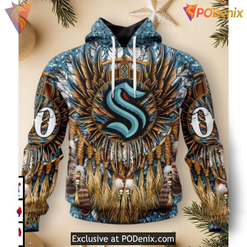 Product Information for Native Costume Cultural Pattern Design NHL Seattle Kraken Hoodie 3D Custom: