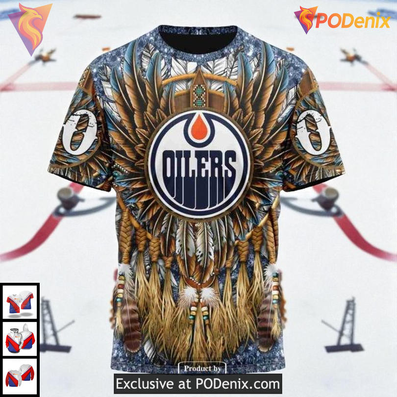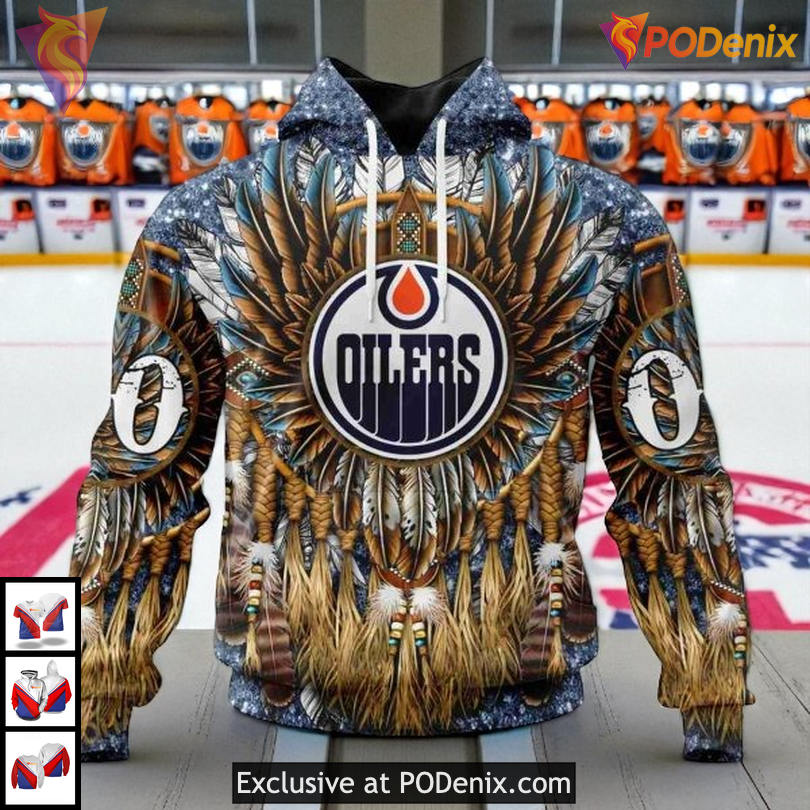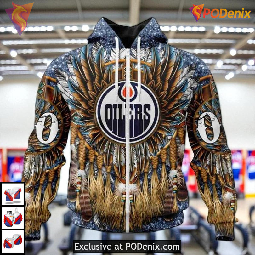 Native Costume Inspired Edmonton Oilers Apparel: Unique 3D Artwork Hoodie