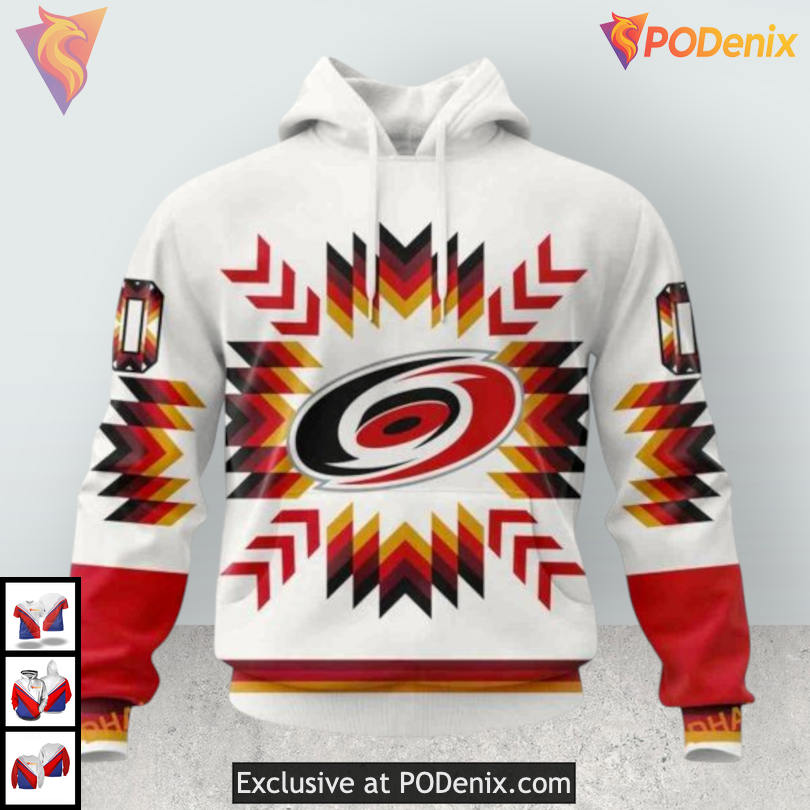 The native pattern design carolina hurricanes sweatshirt captures the essence of competition and camaraderie. It celebrates fan rituals such as pre-game gatherings and watch parties, where supporters unite in their shared enthusiasm for the Hurricanes.