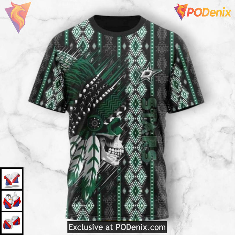 Custom Dallas Stars 3D Hoodie Design Featuring Unique Native Skull Artwork