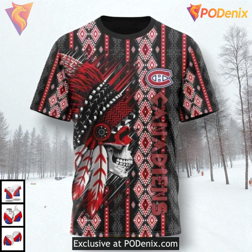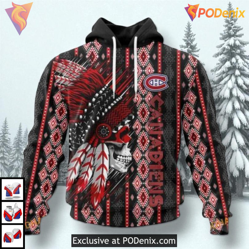 Purchase Montreal Canadiens 3D Hoodie Featuring Unique Native Skull Artwork