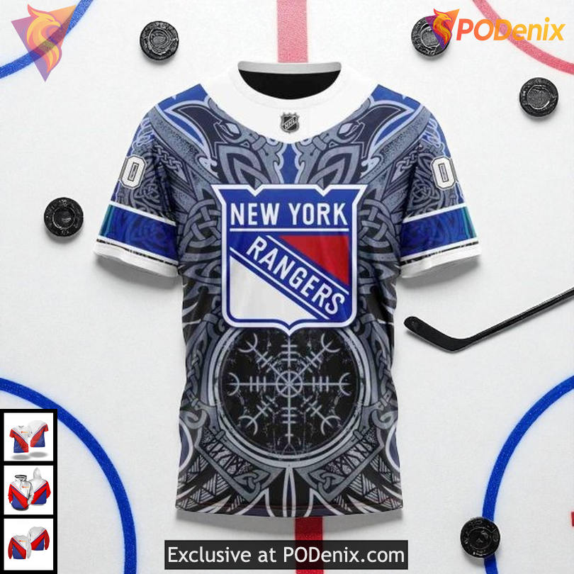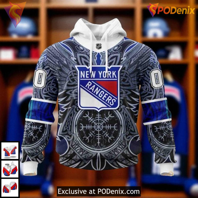 New York Rangers Viking Hoodie: Custom 3D Style with Norse Symbols