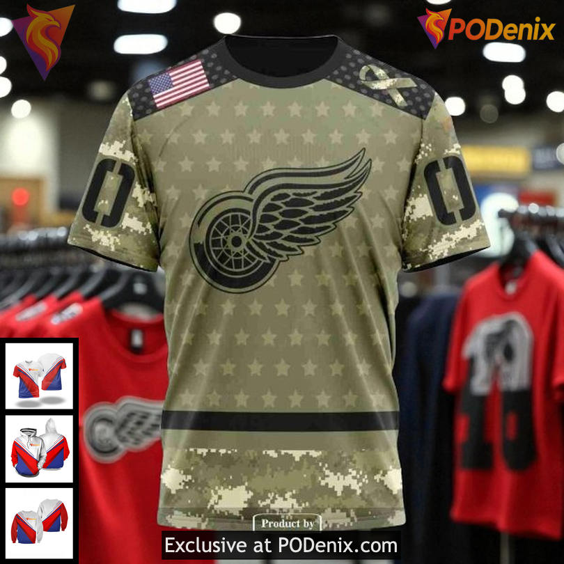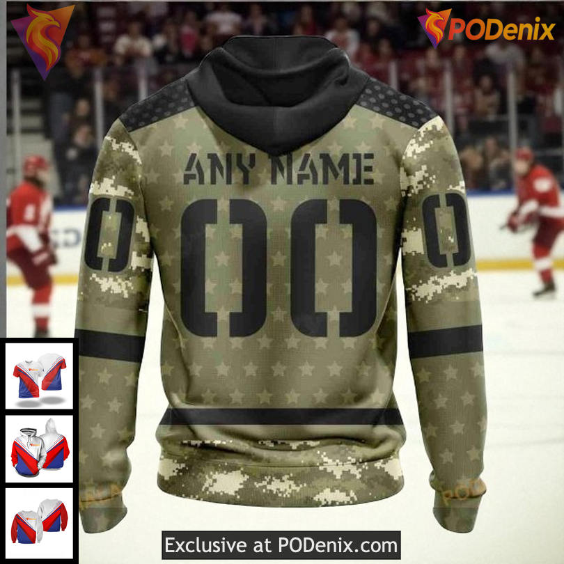 Product Information for NHL Detroit Red Wings Hoodie 3D Camo Military Appreciation Custom Design: