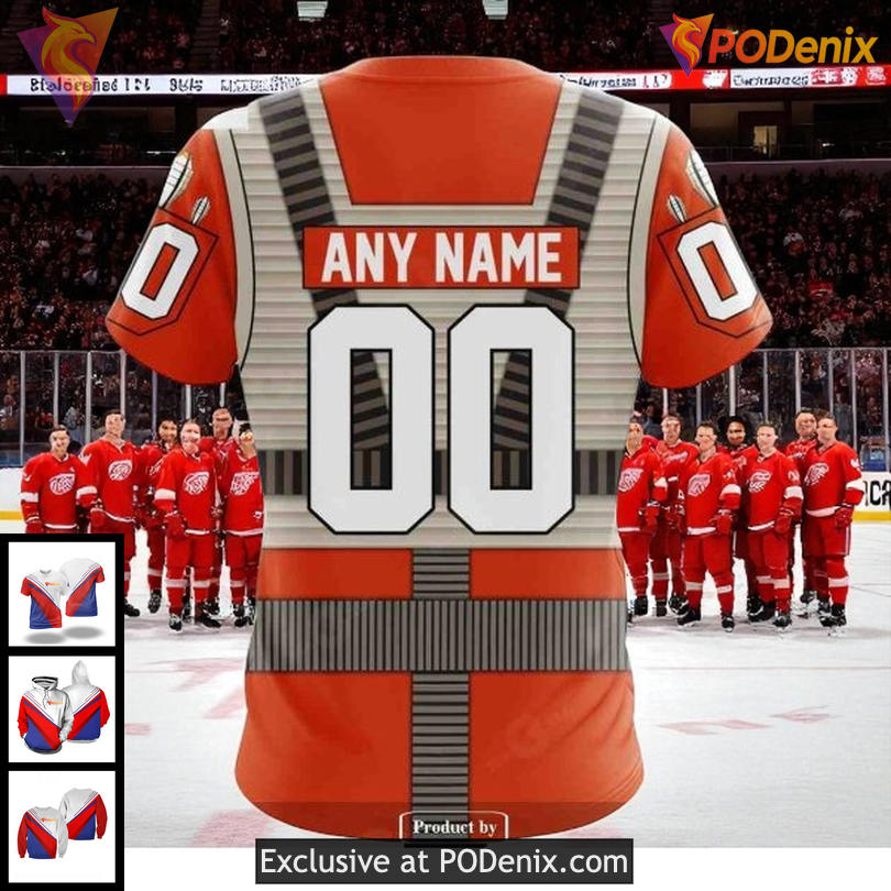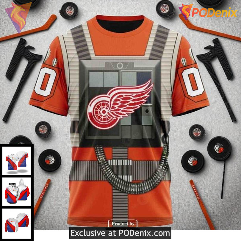 NHL Detroit Red Wings Hoodie 3D is inspired by the legendary Rebel Pilot look, blending team passion with Star Wars flair. The bold design captures energy and style with the quote Any Name 00 for a truly personalized vibe. Explore this unique fan piece today.