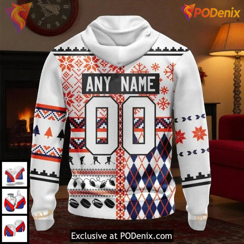 NHL New York Islanders Hoodie brings the holiday spirit alive with playful Christmas patterns and the team’s bold logo, perfect for fans who want to stand out. Add your name and number for a truly personal touch.
