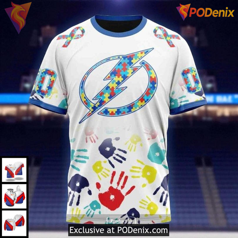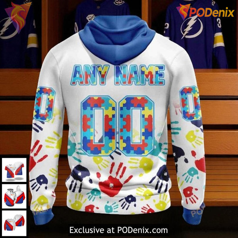 Product Information for NHL Tampa Bay Lightning Hoodie Autism Awareness 3D Design With Handprints: