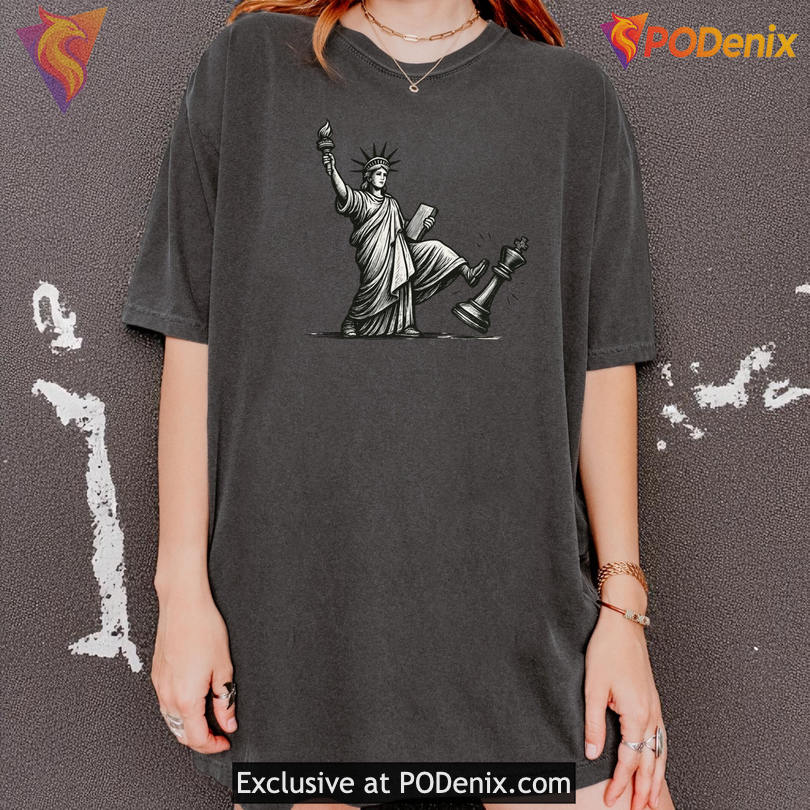 The No Kings Movement Shirt showcases a bold design inspired by the Statue of Liberty, blending vibrant colors and dynamic graphics. This shirt captures the spirit of protest and freedom, making a powerful statement against oppression. Its energetic vibe resonates with those who seek change.