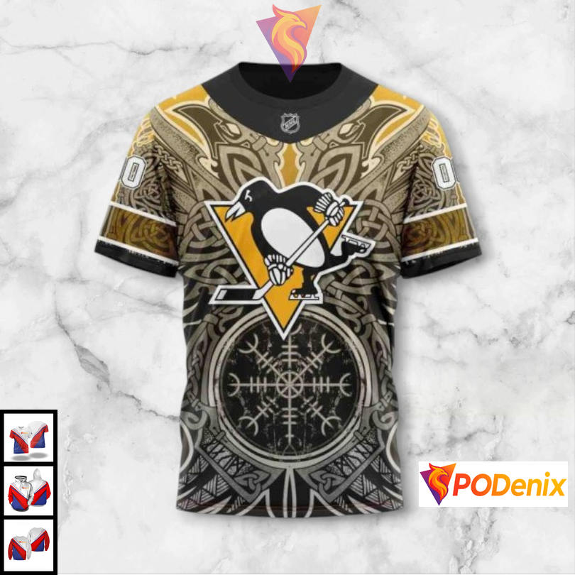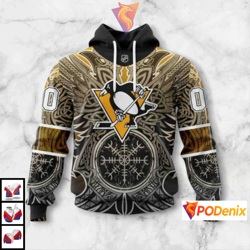 Product Information for Norse Viking Symbol Artwork Custom Pittsburgh Penguins Personalized 3D Hoodie NHL: