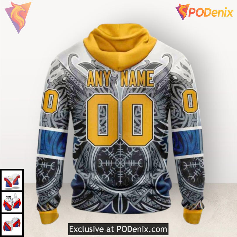 Product Information for Norse Viking Symbols Artwork Nashville Predators Graphic Hoodie Custom Design: