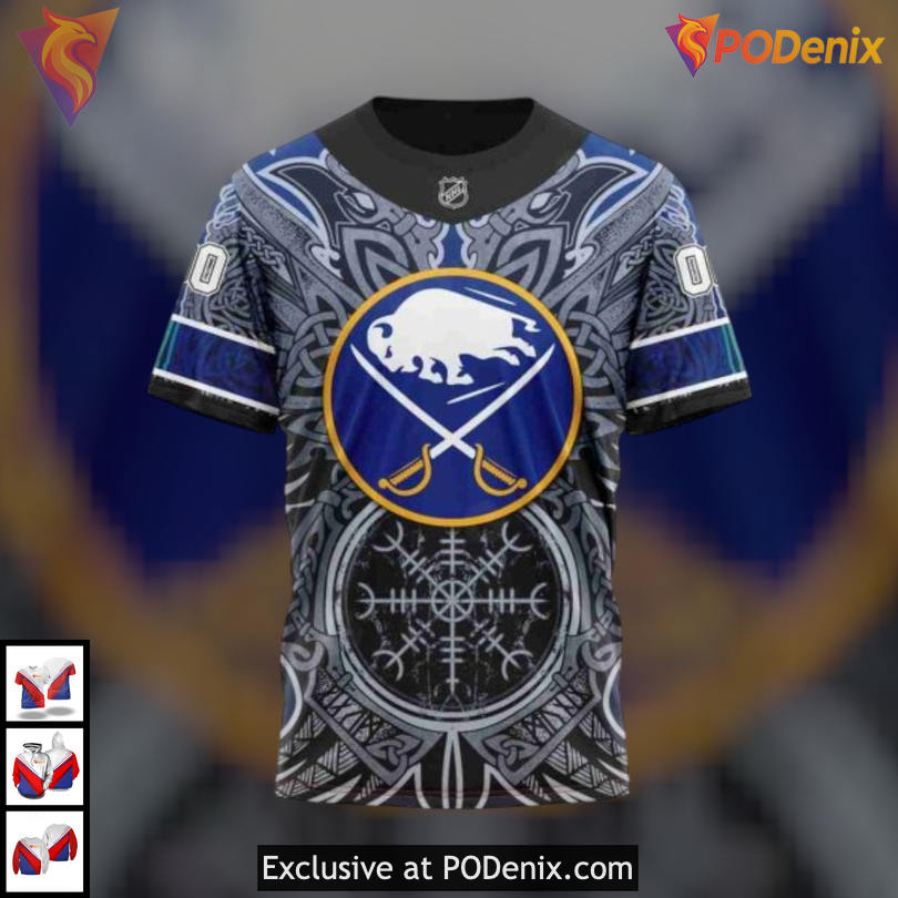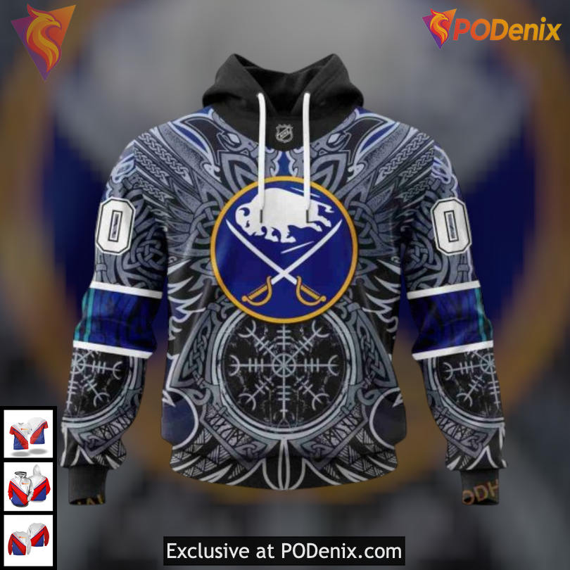 Custom 3D Buffalo Sabres Hoodie Design with Norse Viking Symbols Artwork