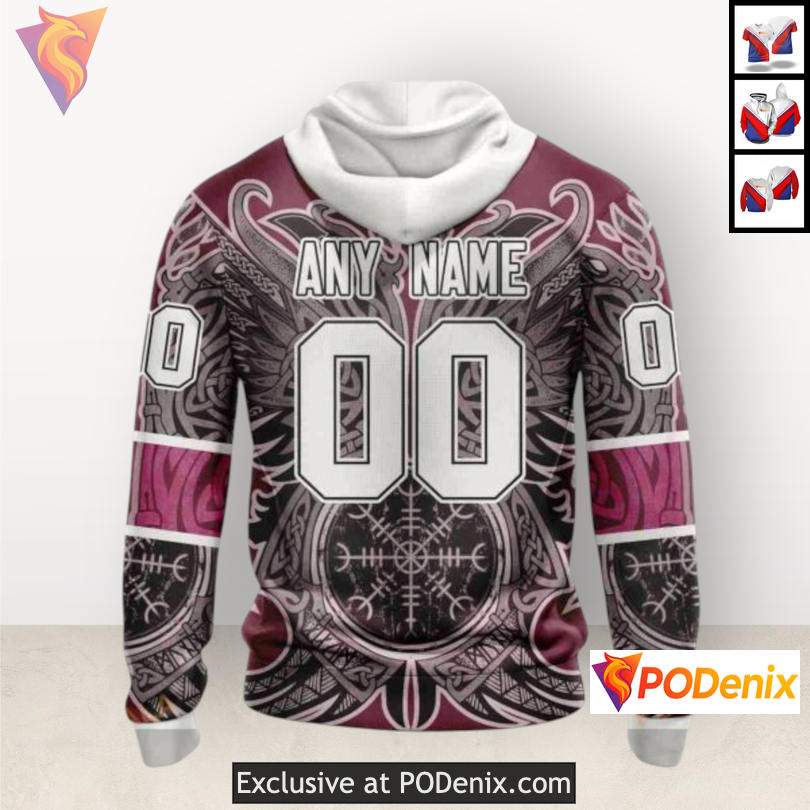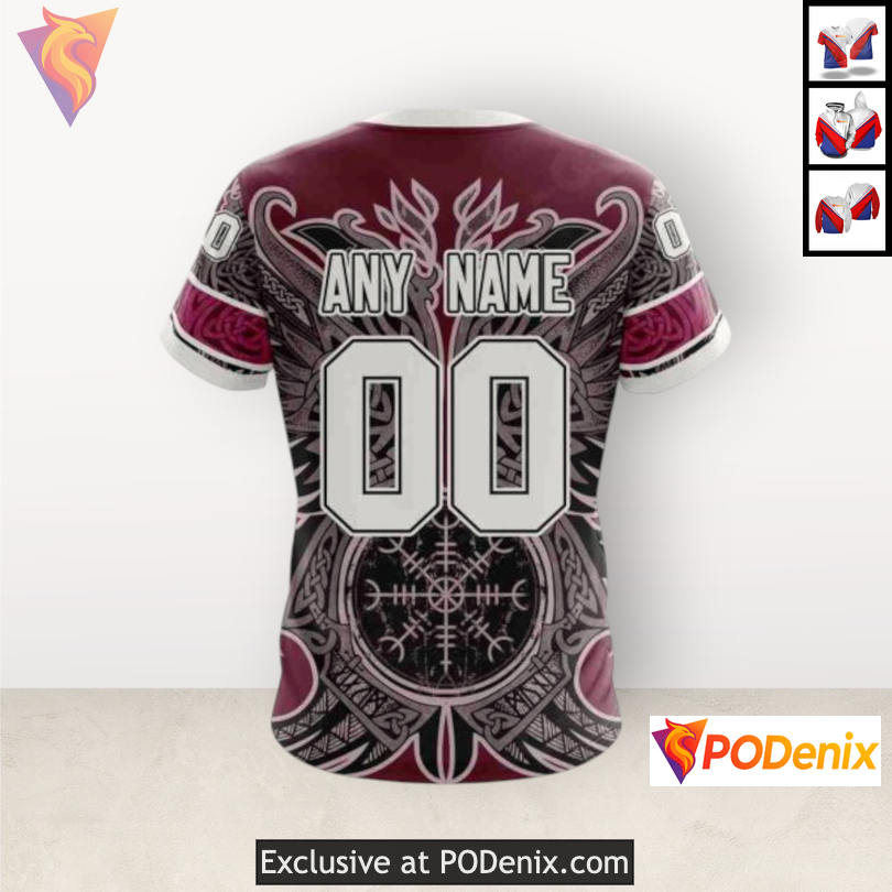 Custom 3D Colorado Avalanche Apparel with Norse Viking Symbols for True Fans