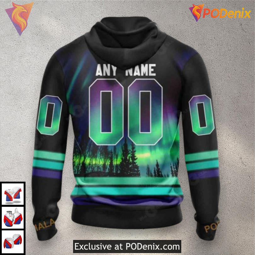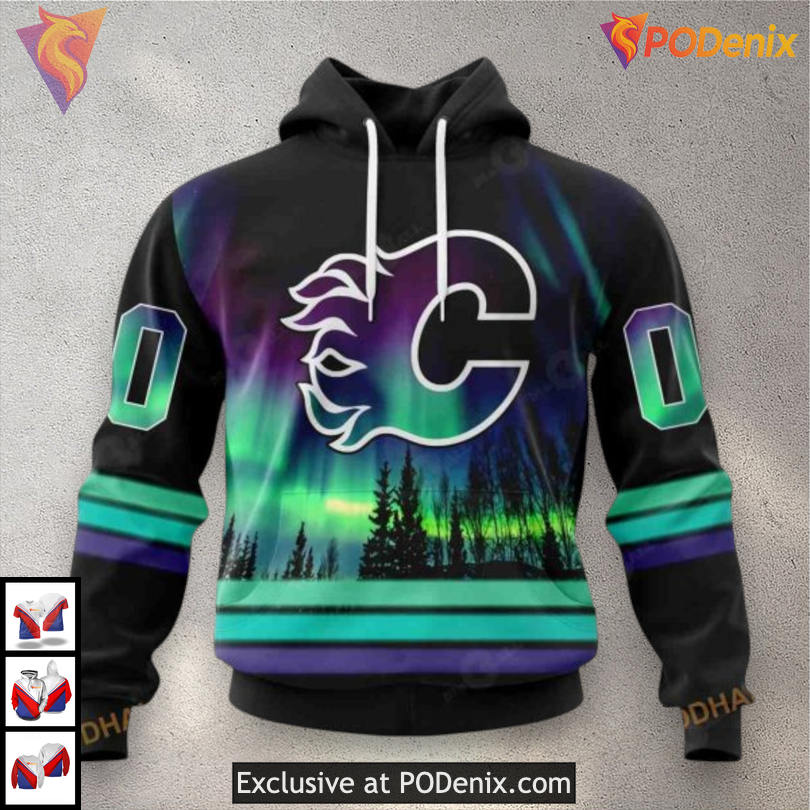 Product Information for Northern Lights Artwork Calgary Flames Graphic Hoodie 3D NHL Sweatshirt: