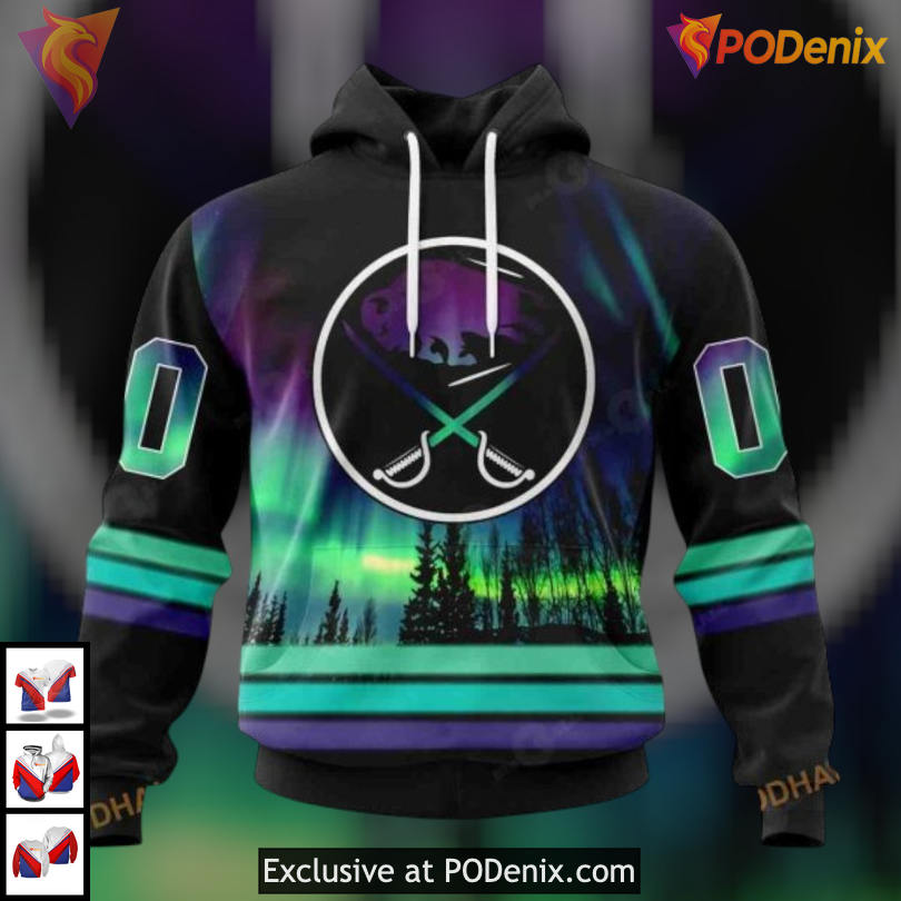Product Information for Northern Lights Aurora Concept NHL Custom Number Buffalo Sabres Hoodie 3D: