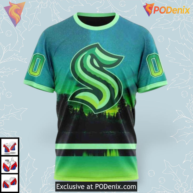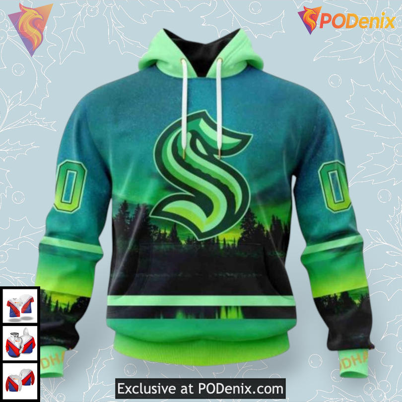 Custom Seattle Kraken 3D Hoodie Featuring Unique Designs Inspired by Northern Lights