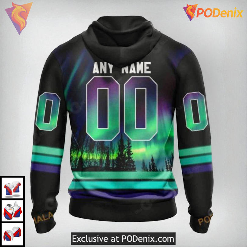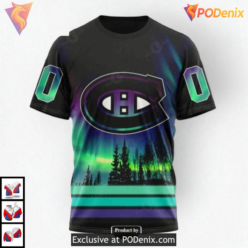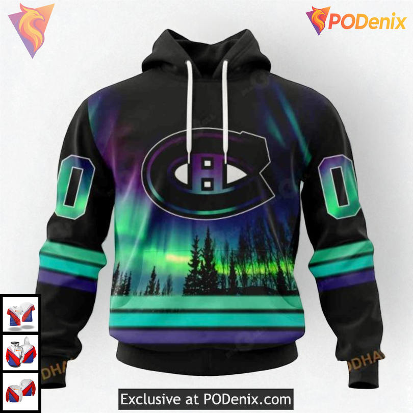 Product Information for Northern Lights Aurora Effect NHL Montreal Canadiens Hoodie 3D Custom: