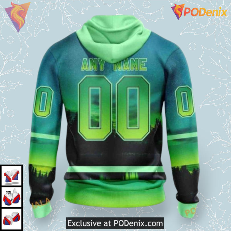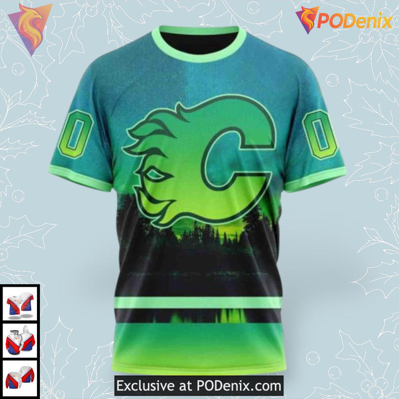 Custom Name Calgary Flames Apparel – Northern Lights Design 3D Hoodie Edition