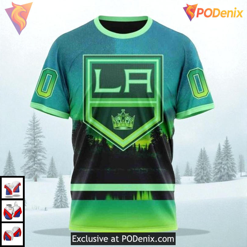Custom Los Angeles Kings 3D Apparel: Northern Lights Inspired Sportswear
