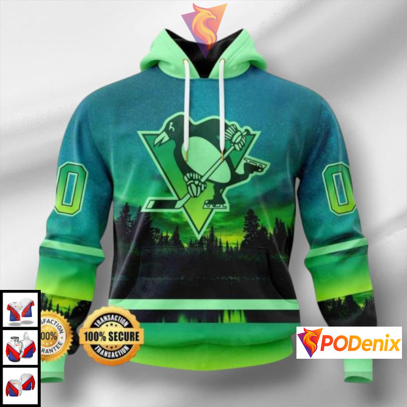 Product Information for Northern Lights Inspired Theme Pittsburgh Penguins 3D Hoodie Personalized NHL Design: