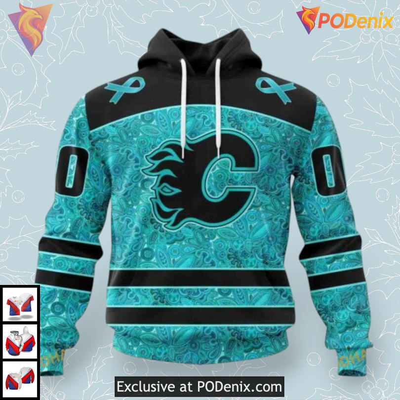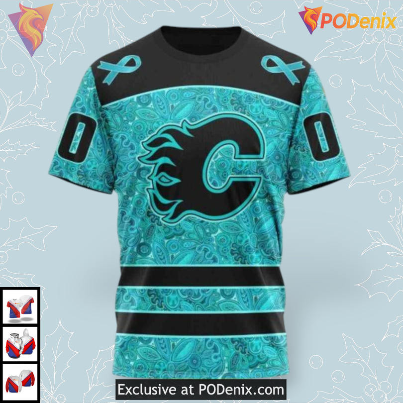This vibrant piece of ovarian cancer awareness calgary flames apparel reflects the passion of dedicated fans. Its bold design serves as a conversation starter, emphasizing the importance of both sports and social awareness in today’s world.