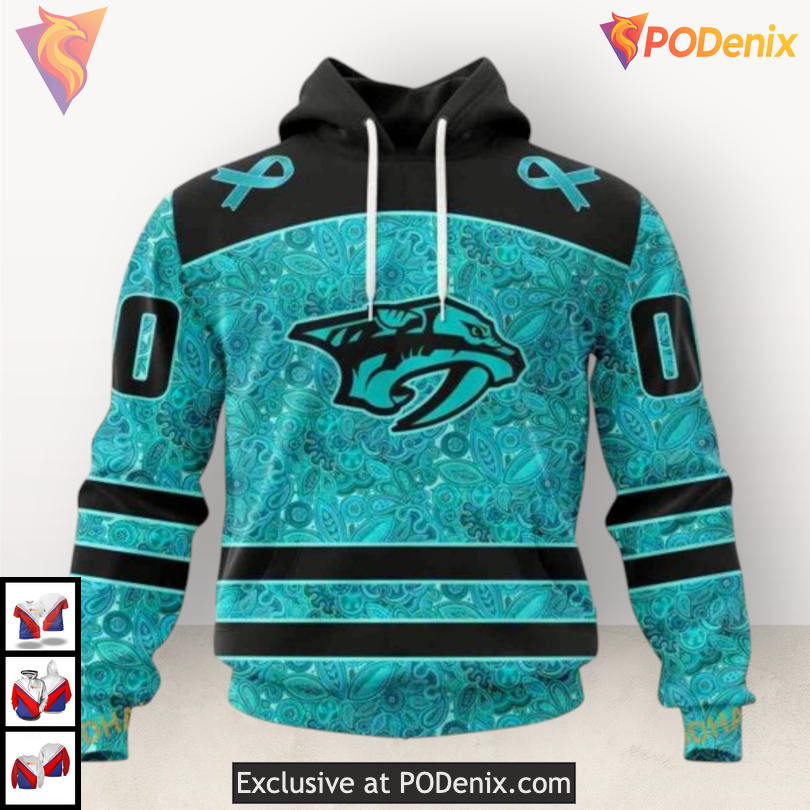 Custom Ovarian Cancer Awareness Nashville Hoodie for Predators Fans