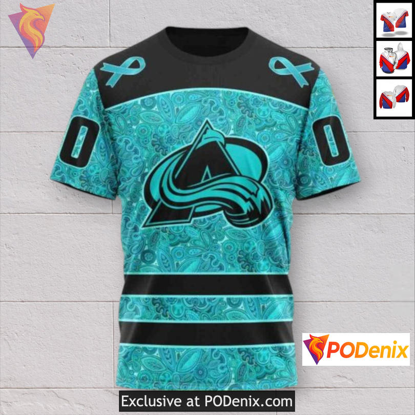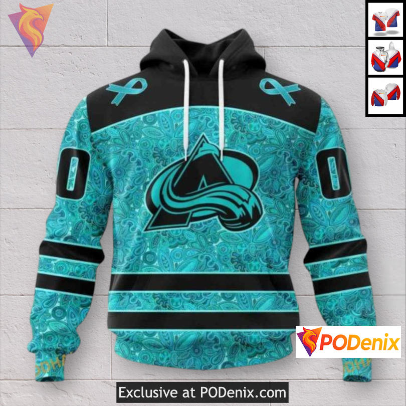 Custom 3D Colorado Avalanche Hoodie Design for Ovarian Cancer Awareness Tribute