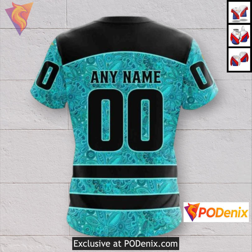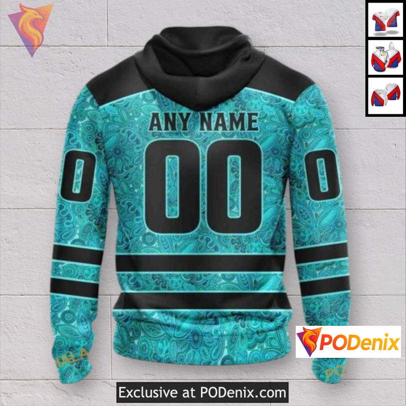 The Colorado Avalanche Mens Hoodie features a striking custom 3D design that embodies the spirit of teamwork and resilience. With vibrant colors and dynamic graphics, this hoodie not only showcases your love for the team but also highlights the importance of ovarian cancer awareness.