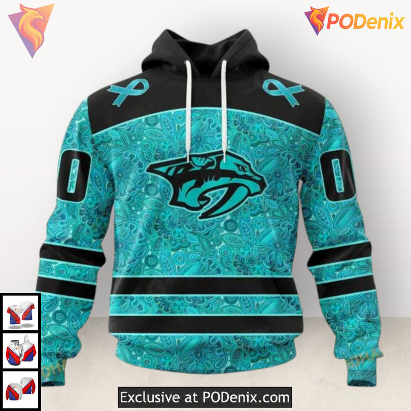 Custom 3D Ovarian Cancer Apparel – Nashville Predators Unisex Hoodie Tribute
