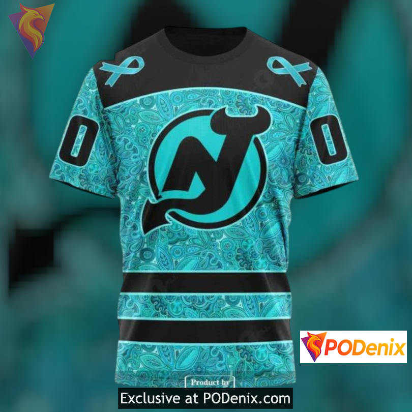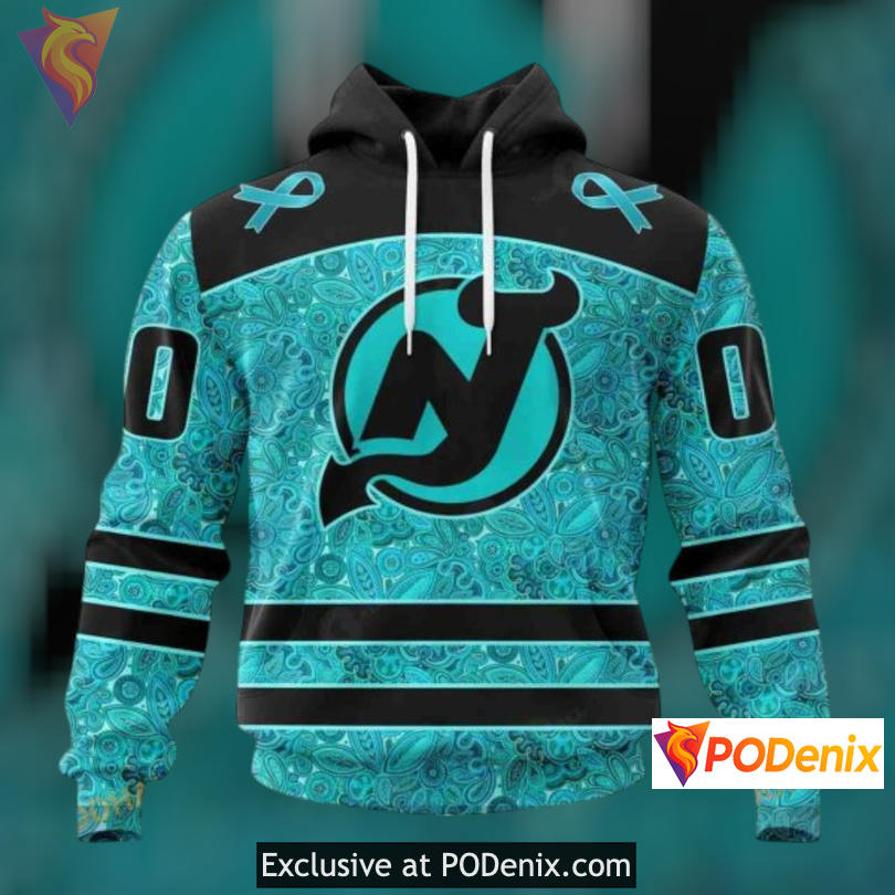 Custom 3D New Jersey Devils Hoodie: Ovarian Cancer Awareness Tribute